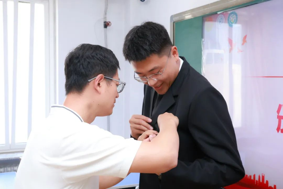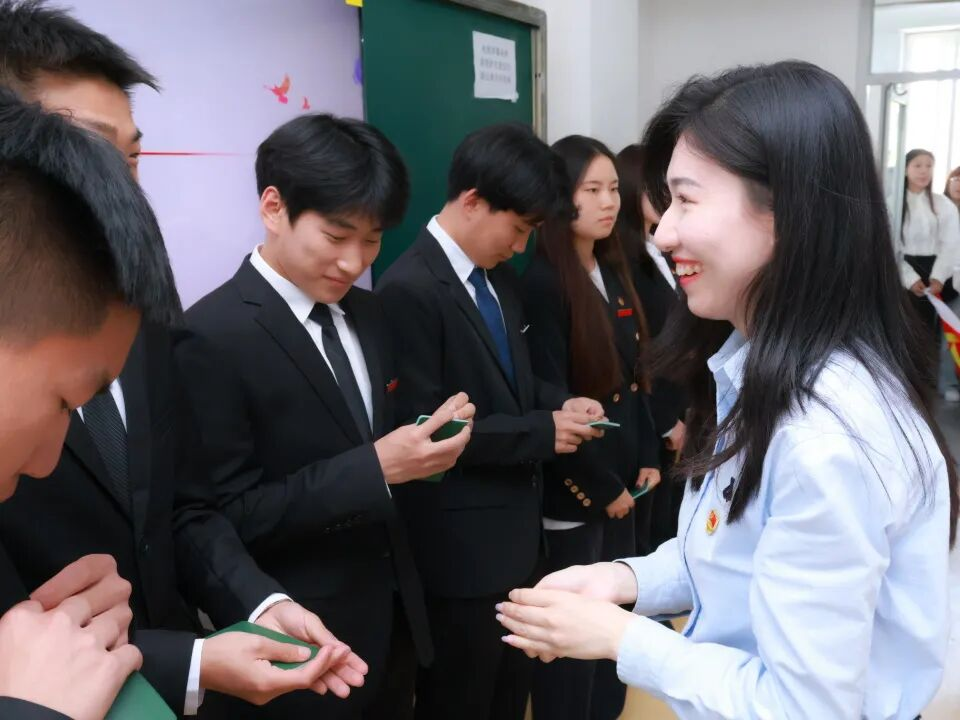入团仪式在激昂的国歌声中正式开启,点燃青春报国之志。公司团总支干事聂文琼老师宣读新发展团员名单,继而进行颁发礼,各位老师满怀祝福与期望,亲手为新发展团员颁发团员证并佩戴团徽。闪光的团徽如同星辰,缀在新团员胸前,既闪耀着团员身份的荣光,也沉甸甸地承载着共青团的使命。