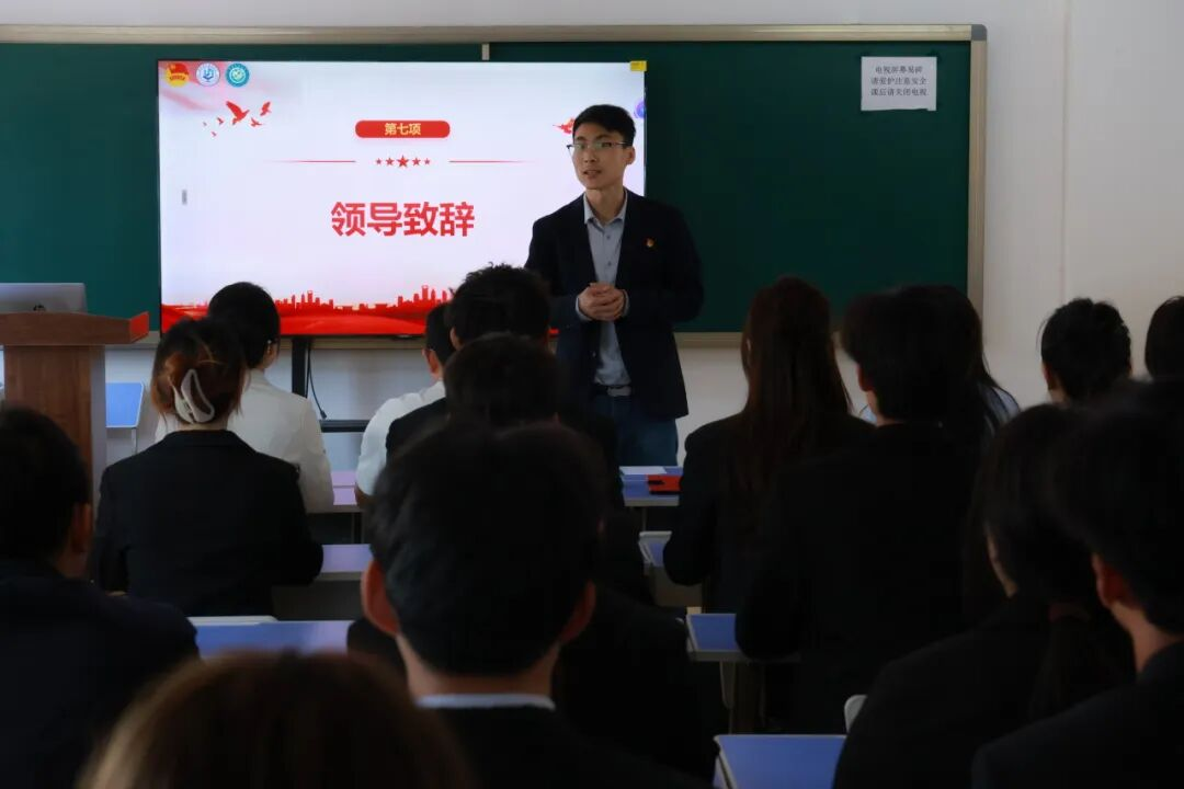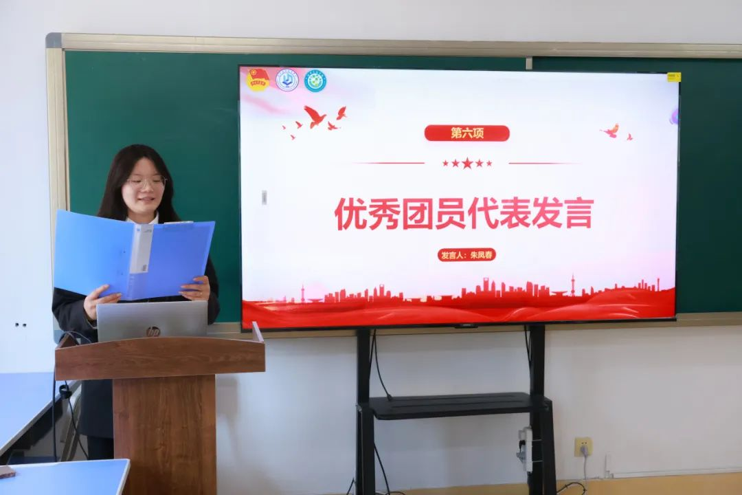 优秀团员代表朱凤春则将自己的成长故事娓娓道来,“共青团见证了我的蜕变,希望大家珍惜这份荣誉,在学习上,勤奋刻苦,勇于探索,用知识武装自己,为实现梦想打下坚实的基础;在生活中,团结同学,关爱他人,传递正能量,用实际行动践行共青团员的使命。在青春路上勇敢追梦,绽放属于自己的光芒!”