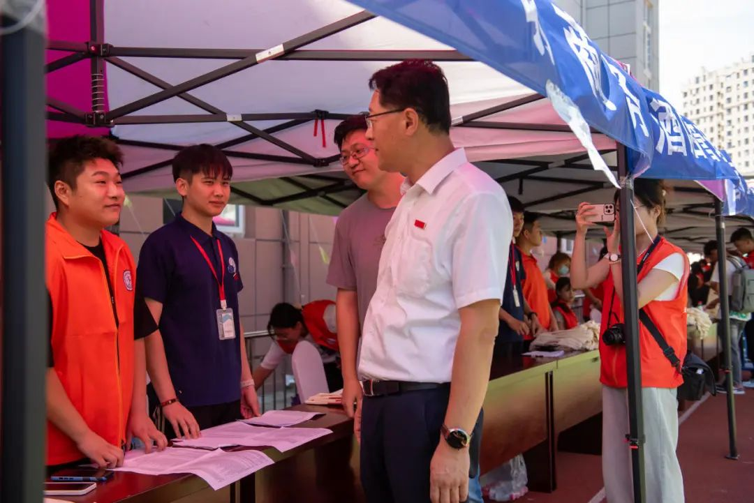 迎新当天,公司党委书记王运河,党委副书记、经理段树斌携全体公司领导班子成员来到开发区校区伟德国际victor1946迎新现场,了解当前新校区各方面状况,关心迎新工作人员和志愿者,与新生及家长进行了亲切交流,详细了解他们的适应情况以及对老员工活的期望,鼓励新生们要尽快适应新环境,树立信心,勤于学习,开启有意义的老员工活,勇于创新创业,收获精彩未来。