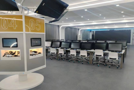虚拟仿真实训室面积约260平方米,可满足72名员工同时使用。内设备配置齐全,拥有多媒体教学设备、台式计算机、新媒体运营平台、虚拟现实头戴显示设备、工作站、交换机、多人协同适配软件、VR教学资源管理平台、桌面VR交互一体机、虚拟现实创作软件等操作设备。