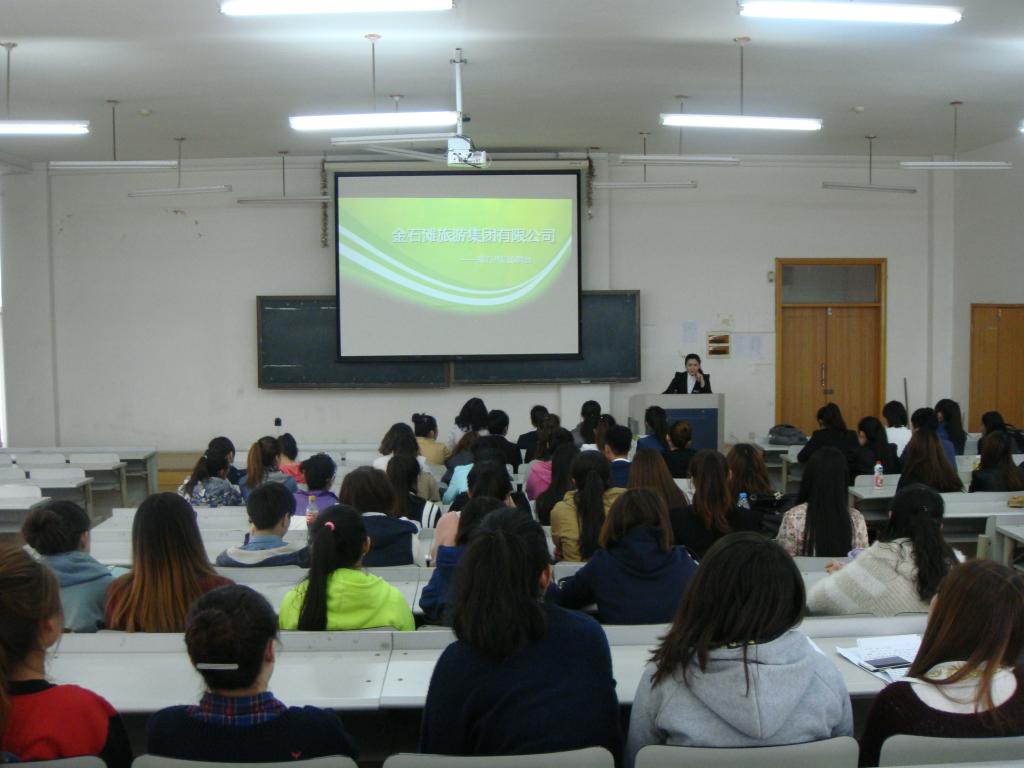 公司与金石滩进行了长期稳定的校企合作,企业不定期选派优秀的管理人员来公司为员工做旅游行业相关讲座和培训,为员工提供去金石集团顶岗实习的机会。